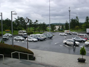 駐車スペースはこんな感じ。自衛隊のトラックが沢山止まっていました。 |