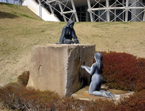 水が出てませんが、両手を差し出した像の手のひらに水が滴り落ちるようになってます。 |
