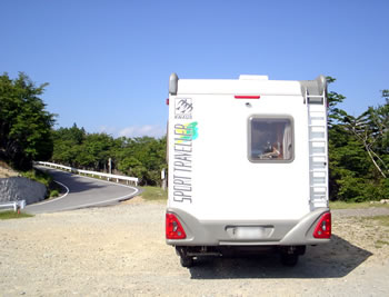 トイレ廃水を溜めておくタンクで容量は20Lあります。タンク内には分解・消臭用の薬品(アクアケム)を入れておくので臭いは殆ど気になりません。排水時は緑色のキャップを外してエア抜きボタンを押しながらトイレに流します。旅の最後を飾る面倒な作業ですが、やはり旅車に装備されたトイレの便利さにはかないませんよ。 |
