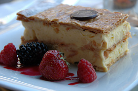 パリ祭&セーヌ川遊覧 7月14日は革命記念日でパリ祭。朝からコンコルド広場へ向かう道筋は大勢の人でにぎわう。シャンゼリゼ通りは騎馬隊や軍隊などの大パレードが続き、空には空軍のジェット機やヘリコプターが飛び交う。 ホテルから徒歩でシャンゼリゼ通りへと向かう。コンコルド広場には各国からの来賓で警備も厳しい。 午後はまどかさんたちとセーヌ川の遊覧船を楽しむ。一番人気の「バドー・ムーシュ」に乗船した。この遊覧船は船も大きくセーヌ川の主要な場所を隅々まで見せてくれるのがいい。灼熱の太陽を浴びて約1時間10分の船旅を終え、近くのカフェで冷たい飲み物をいただきホテルへと戻った。 最終日はサッポロラーメン&カフェ・ド・ラペ 7月15日。今日は帰国の日。午後4時までは自由に過ごせる。みゅうバスに参加するとラーメン無料券がもらえるのでこれが今日の昼食となる。みゅうバスの近くには数件のラーメン店があり自由に選択できる。サッポロラーメンと書かれた店に入る。みそラーメンとチャーハンを注文。チャーハンはそこそこいける味だがラーメンはいまいち。モンサンミッシェルの帰りにまどかさんと食べた「ZEN」という日本食(ラーメン、冷やし中華、カレー、すしなど)の店で食べたラーメンの方が味はしっかりしている。まどかさんのお気に入りはこの店の冷やし中華とか。 最後はANAハローツアーからおまけにもらった「カフェ・ド・ラペのお茶とケーキクーポン」を使う。混雑した時間帯を除くとあるので午後2時半過ぎからとなる。オペラ座のすぐ近くにあるこの店はいつも混雑している。席を見つけてさっそく注文。クーポンを見せると威勢のいいお兄さんがフランス語でしゃべりまくったが何を言ってるのかまったくわからないがたぶん冗談でもいっているのだろう。にこにこ顔でみんなに言葉をかけている。 パリを歩き回った最終日とあって足が棒のようになった。ここで時間までのんびり休みながら人間ウォッチをする。日本人の観光客はすぐにわかる。だれもがバックをたすきがけにして手には大きな袋を下げている。たいがい二人ずれが多く一人で歩く日本人は少ない。そういえば帰りの飛行機は手荷物がものすごい数でほとんどが日本人。免税申請カウンターは日本人のみが並んでいる。ブランド天国フランスの最大のお客は日本人のようだ。 まったくブランドには興味のない私たちでも家族にすこしばかりのお土産をと思い、空港の免税店へ行ったがここの空港は大きさの割に免税店が数軒しかなく有名ブランドのバックなどはまったくない。チョコレートやお酒など、どこの空港でも買えるようなものばかり。やむなくANAの機内のSKY SHOPで免税品を選んで帰った。今回は二度目のパリだったがやはりカルチェラタン周辺が一番よかった。